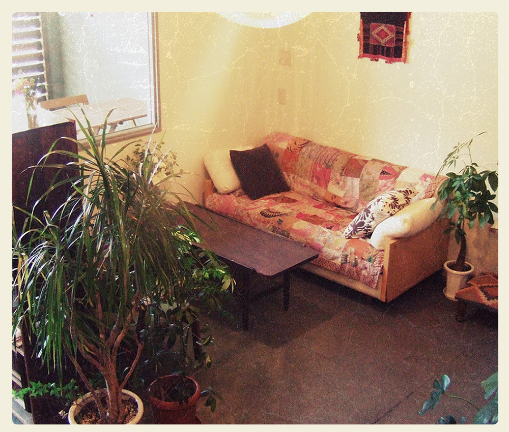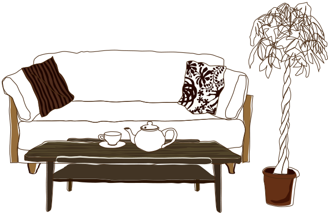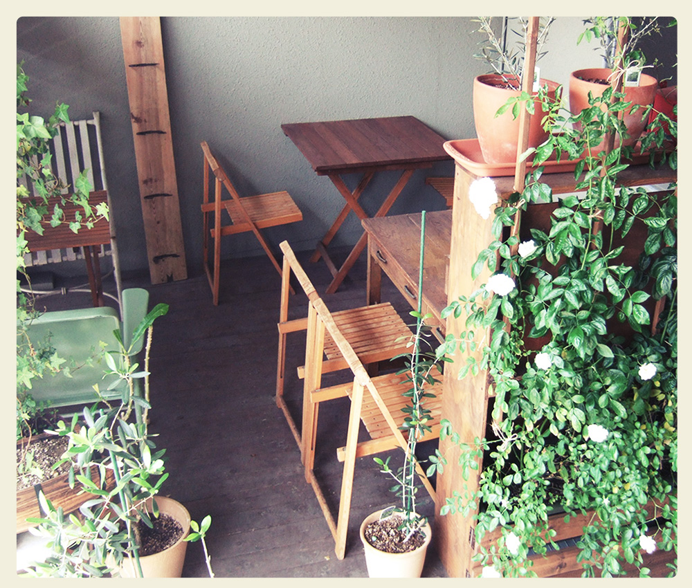 古い家具を配置し、レトロでエスニックな雰囲気です。